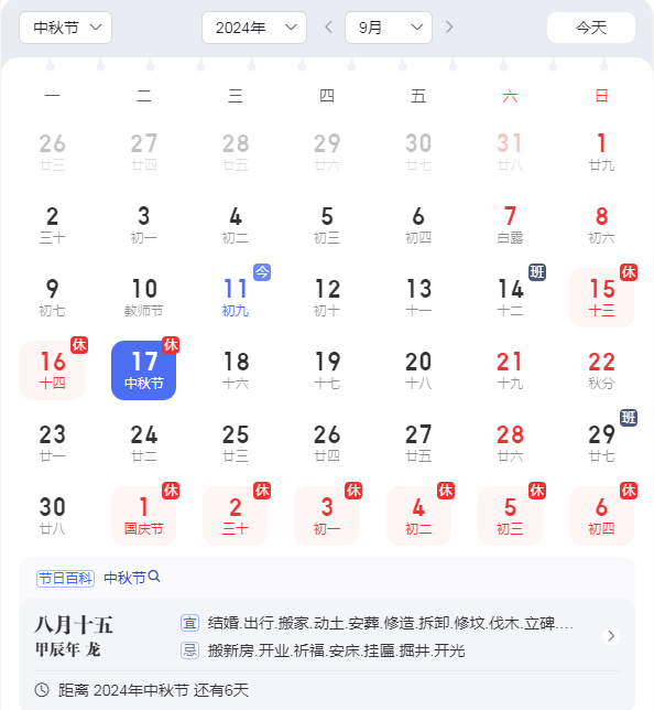 在2024年中秋傳統(tǒng)佳節(jié)即將來臨之際,根據(jù)國務(wù)院辦公廳公布的通知精神,結(jié)合我公司實(shí)際情況,現(xiàn)將中秋節(jié)放假通知公布如下: